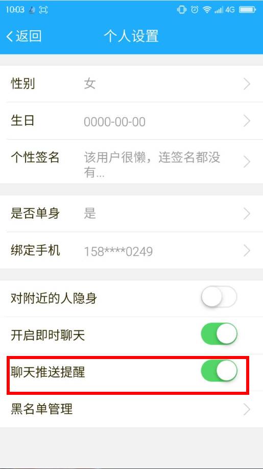 3、在个人设置页面关闭消息接收提醒。
