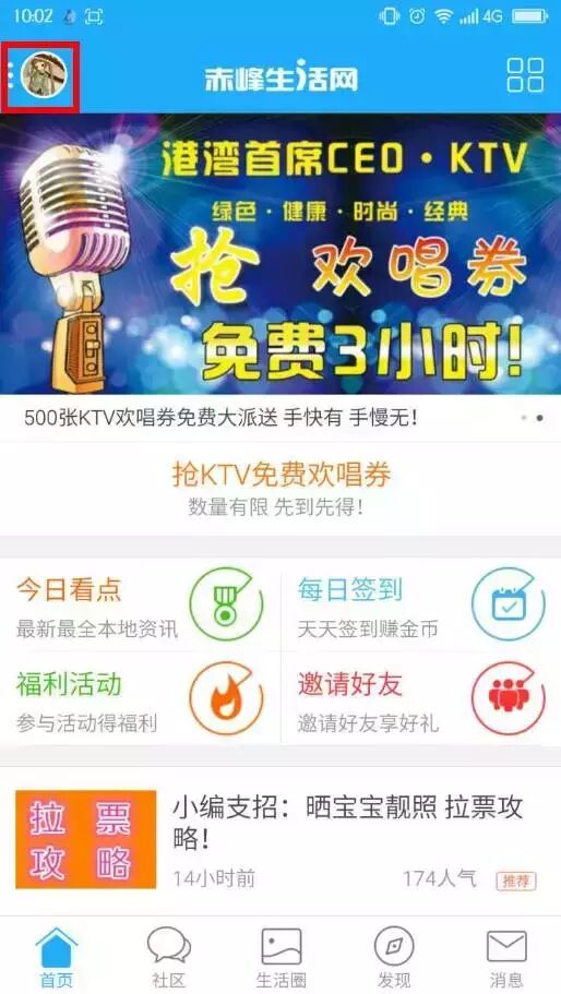 1、打开赤峰生活网APP,点击首页左上角头像按钮